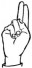 На ћирилици написано БУДИМИР АНДРЕЈИЋ састоји се из 15 слова [?]. Исписано ћириличном једноручном азбуком за глувонеме: